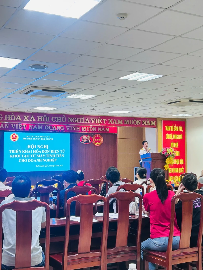 21/05/2025Ngày 21/5/2025 tại Hội trường Lầu 3 – Đội Thuế huyện Bình Chánh, Số 3, đường số 4, Khu trung tâm hành chính, thị trấn Tân Túc, huyện Bình Chánh , EFY Việt Nam đã phối hợp cùng Đội Thuế huyện Bình Chánh tổ chức hội nghị triển khai hóa đơn điện tử từ máy tính tiền.